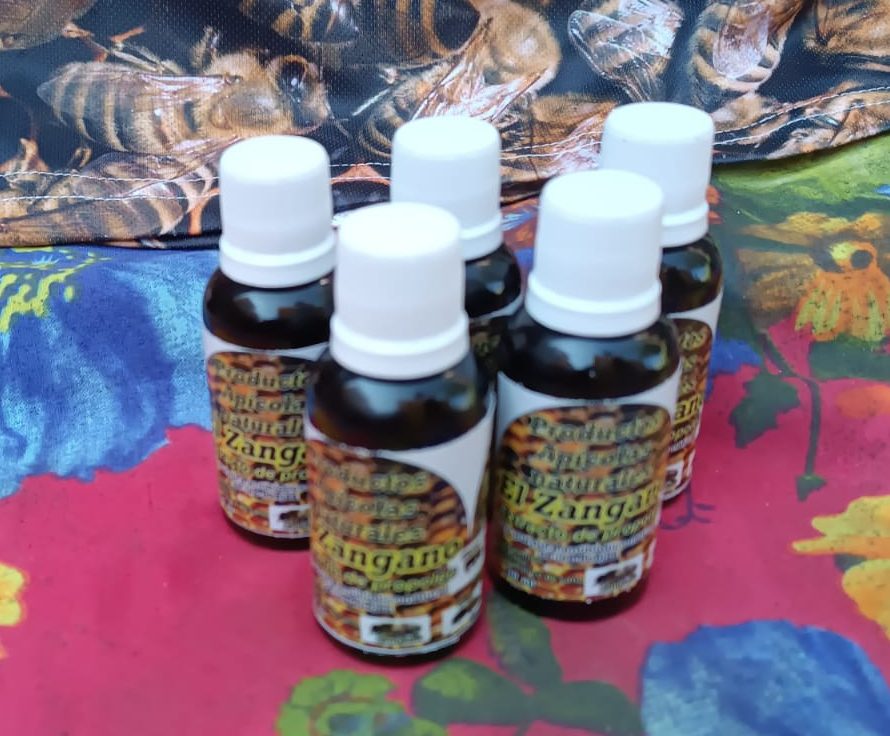 El propóleo es una sustancia resinosa de color casi negro o llega acercaste al verde oscuro depende de su procedencia natural. Las propiedades de este producto han llevado poco a poco al desplazamiento de la penicilina en Europa ya que tiene efectos antimicrobianos, antimicóticos, antiinflamatorios, desinfectantes y anestésico por lo que es usado en, congestión nasal, gripe, bronquitis, mala circulación, hongos en la piel, tos, quemaduras, hipertensión, caries y úlceras gastricas